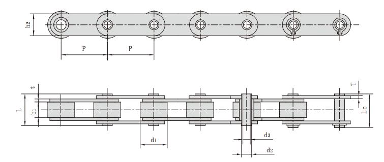 鏈號 節距 滾子直徑 內節內寬 銷軸直徑 銷軸長度 內鏈板高度 鏈板厚度 破斷載荷 每米長重