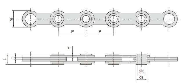 鏈號 節(jié)距 鏈板組合 鏈板高度 鏈板厚度 銷軸直徑 銷軸長度 抗拉強度 平均抗拉強度 每米重量