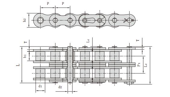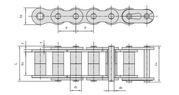 聯軸器鏈主要型號有:節距,滾子直徑,內節內寬,銷軸直徑,銷軸長度,內鏈板高度,鏈板厚度,抗拉強度,每米長重