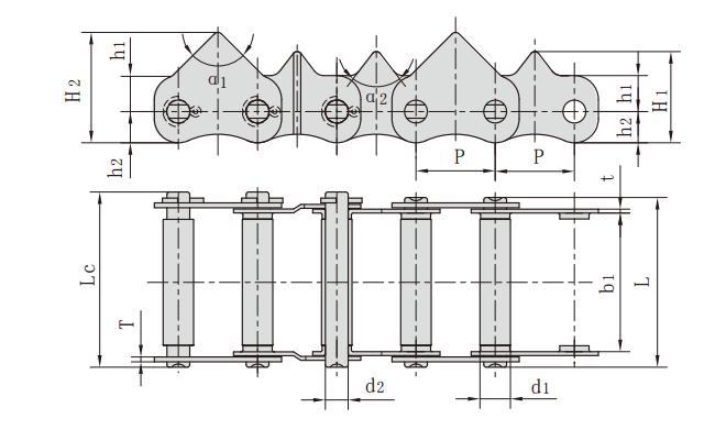 鏈號 節距 滾子直徑 內節內寬 銷軸直徑 銷軸長度 齒形角 鏈板厚度 鏈板尺寸 抗拉強度 平均抗拉強度