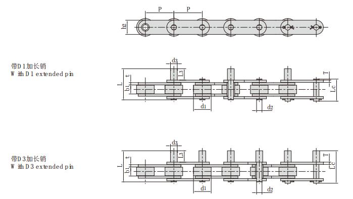 P31.75F9-D1_帶加長(zhǎng)銷輸送鏈 輸送鏈條
