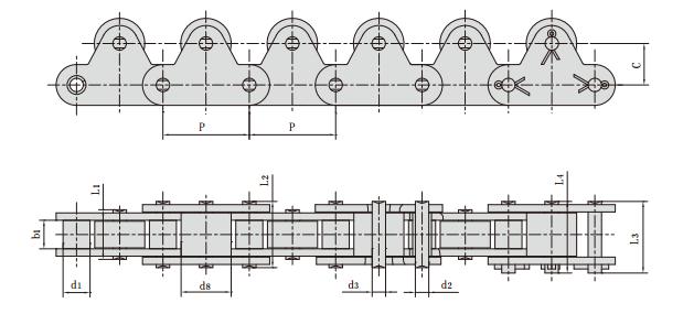 帶頂滾輪雙節距輸送鏈