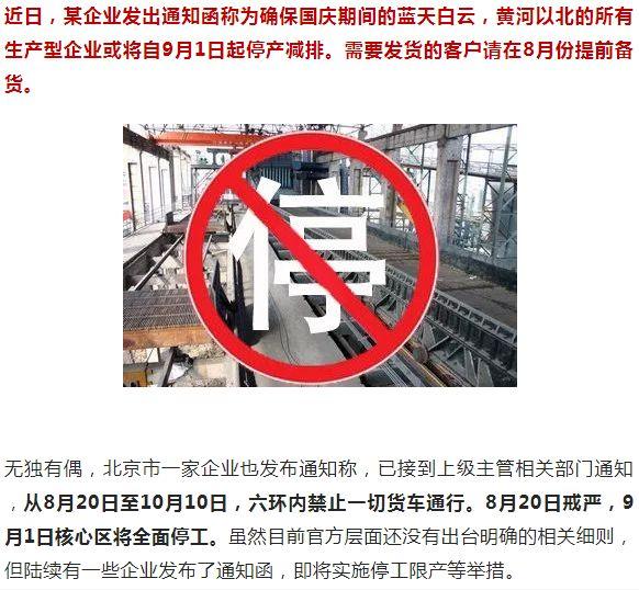 據了解,目前國家生態環境部尚未有正式文件出臺。不過,參考2015年為了保障紀念抗日戰爭勝利70周年期間空氣質量,當時,京津冀區域采取了一系列停限產措施,使得治霾能堅守“最后一公里”。